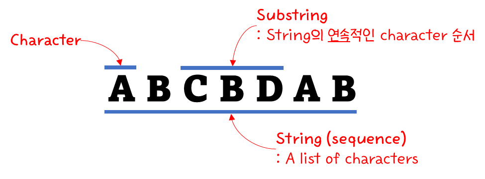 여기에서 주의깊게 살펴봐야 할 것은 "Substring"인데, 연속적인 character를 의미한다.