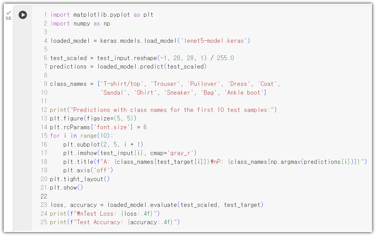 Ch.01(01-3) LeNet으로 Fashion MNIST 분류 실습 후 예측 결과 화면 캡쳐하기