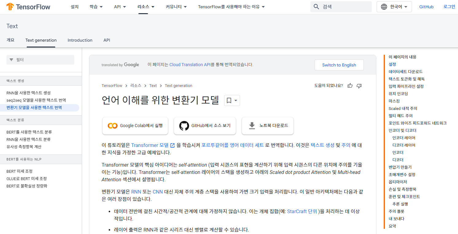 . https://www.tensorflow.org/text/tutorials/transformer?hl=ko