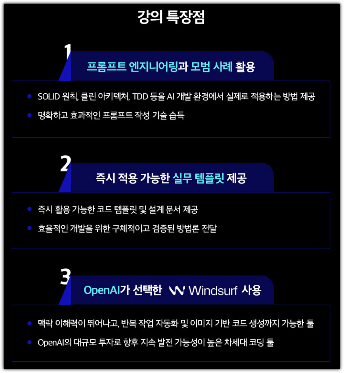 "핸즈온 바이브 코딩" 강의는 프론트엔드/백엔드/데브옵스/보안 4가지로 구성이 되어 있고,
