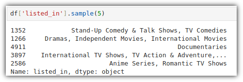이번에는 장르 정보를 담고 있는 'listed_in' column을 살펴보자.