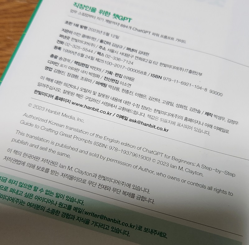따끈따끈한 ChatGPT와 관련된 책이기에 번역본이 아니라 생각했는데 (시간이 좀 걸리는 것이 일반적이기에)