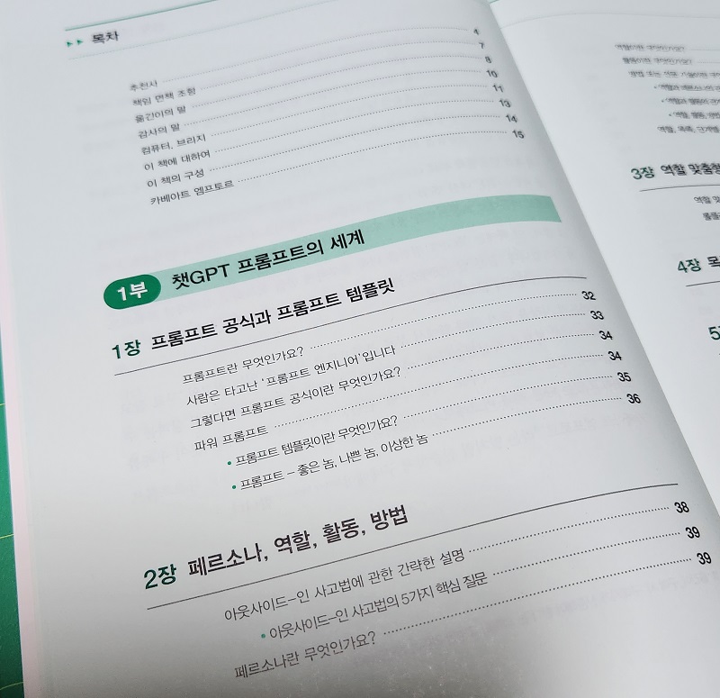 원하는 결과를 얻기 위한 프롬프트 작성 방법을 알려주는 책이다.