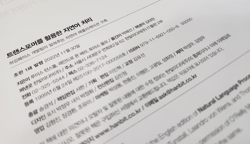 | [한빛미디어] 트랜스포머를 활용한 자연어 처리 (0) | 2023.03.26 |