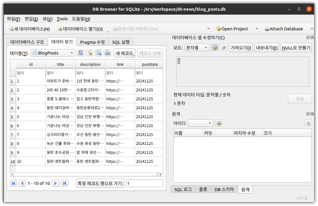 SQLite에 저장한 이후에 전체 포스팅 목록을 SQLite로부터 읽어와서 제목들을 출력하도록 했다.