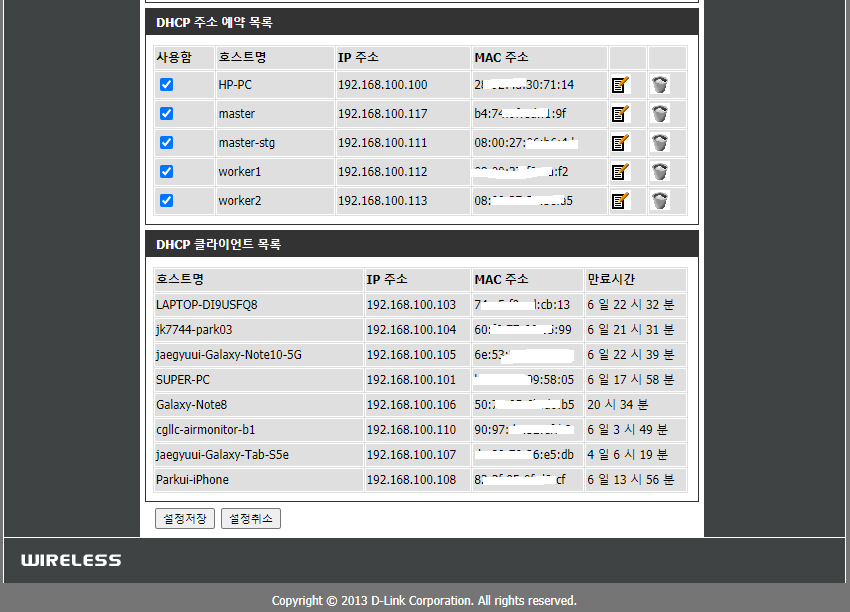 - 나중에 MAC 주소에 따른 IP 할당 설정을 해보자.