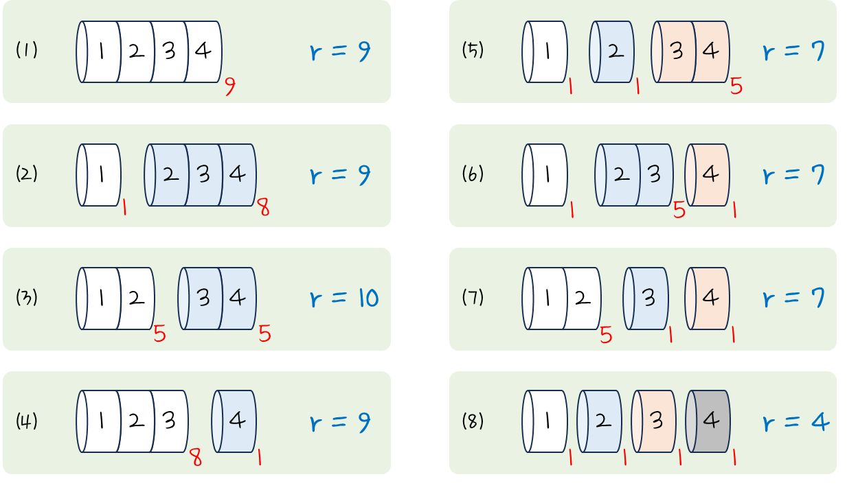 ⒝는 Dynamic Programming 방식으로 해답을 찾아보는 것이다. 모든 조합을 검토하는 것이다.