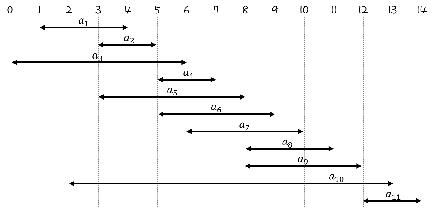 서로 겹치지 않고 동시에 할 수 있는 activities 중 가장 큰 subset을 선택하는 문제는 어떻게 풀면 좋을까?