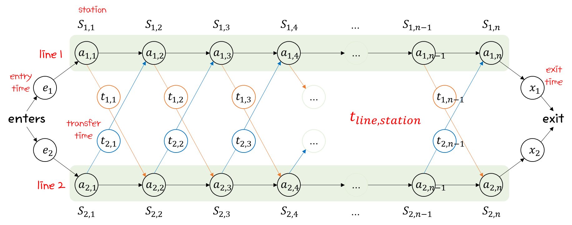 일단 아래와 같은 문제가 주어졌다고 했을 때, 각 activity들의 시작 위치와 종료 위치를 작성해보자.