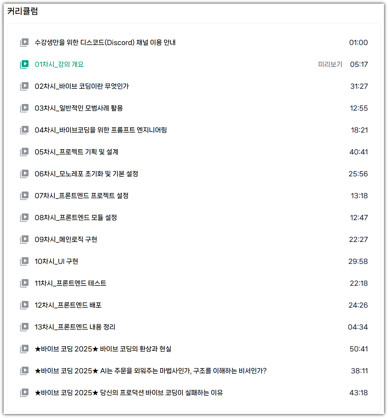 현재는 프론트엔드/백엔드 2개 강의가 등록되어 있다.
