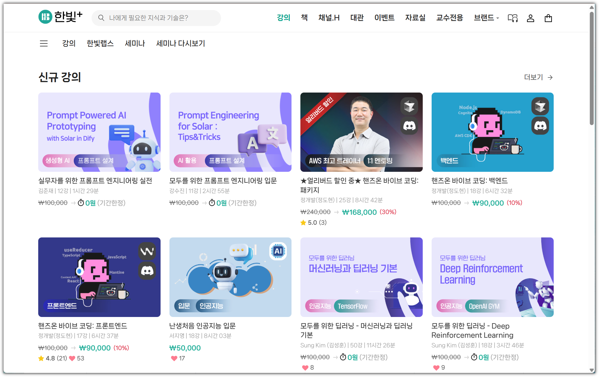 한빛+ 강의 목록도 AI가 모두 채우고 있다 ^^