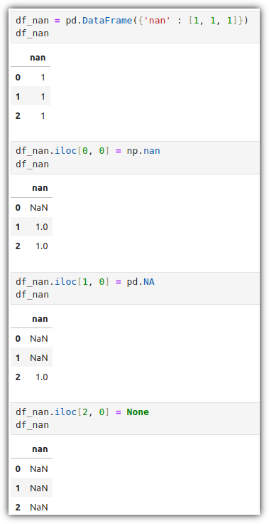 보다 일반적인 것은 Numpy의 "NaN" 개념이고, 실제로도 "np.nan"으로 지칭하는 것이 일반적이다.