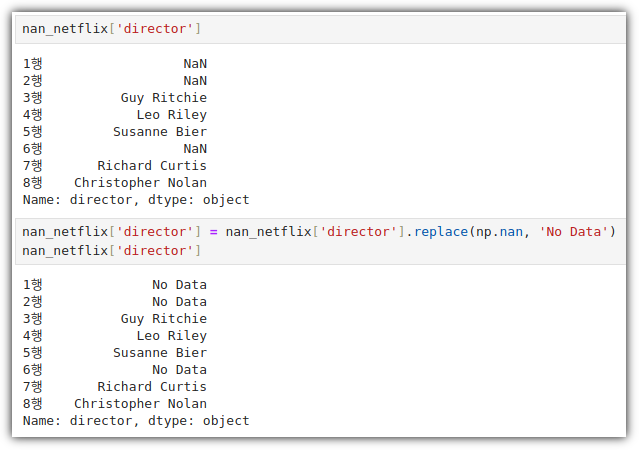 이번에는 .replace()를 이용해서 결측치 값을 대체해보자.