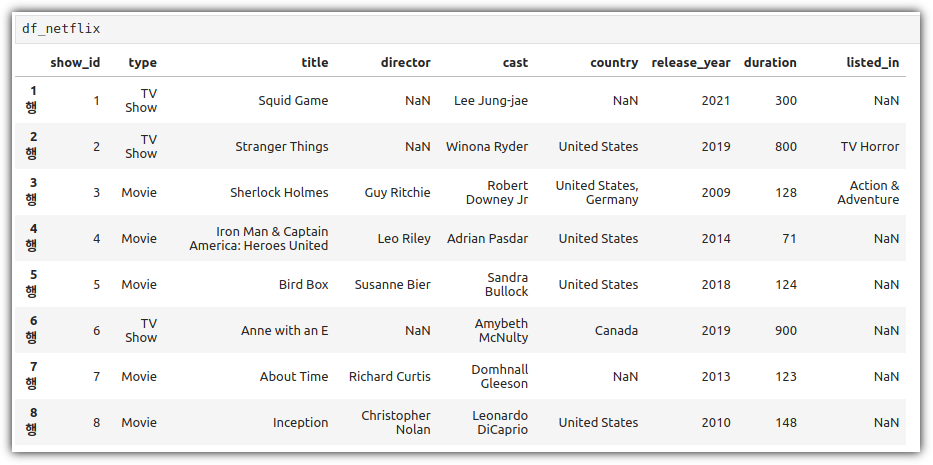 Jupyter Notebook 환경인 점을 이용해서 그냥 해당 변수를 찍어주면 나름 예쁘게 내용을 살펴볼 수 있다.