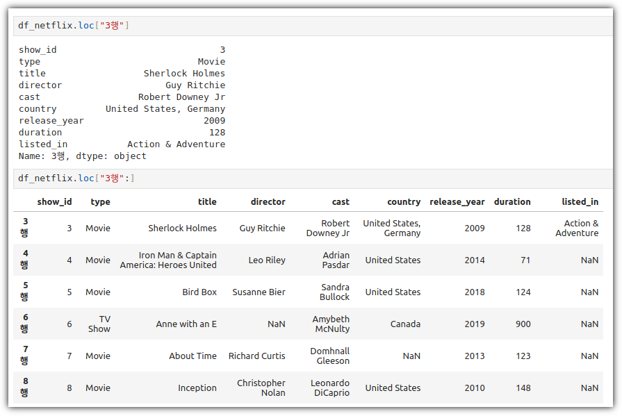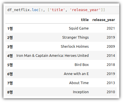 이렇게 정해진 index 값을 이용해서 특정 행을 지칭할 수도 있다.