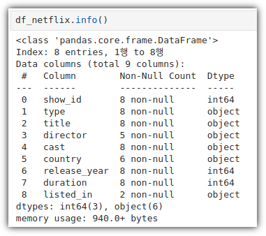 각 column의 Non-Null 정보, DataType 정보들을 모두 보여주고 있다.