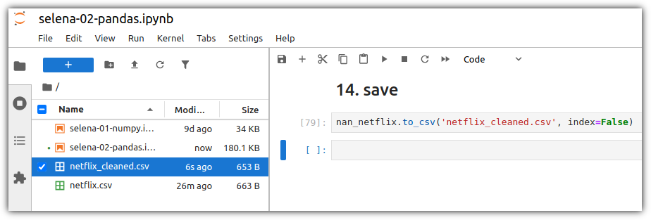 이렇게 정제 작업을 거친 결과를 다음을 위해 파일로 저장을 해보자.