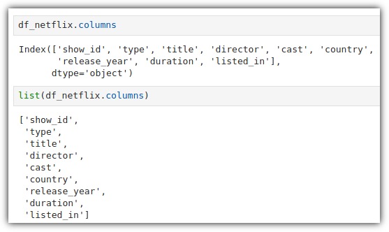 column은 기본적으로는 Index 형식이고, list 데이터 타입으로 변환해서 살펴볼 수도 있다.