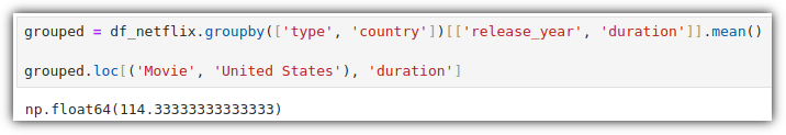 'type'으로 그룹핑해서 'duration'의 평균을 각각 구하라는 의미이다.