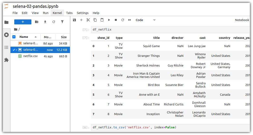 왼쪽 파일 목록에 생성한 CSV 파일이 보일 것이다.