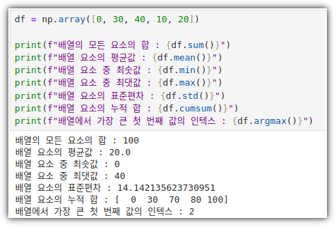 ▷ 평균값(mean) / 중앙값(median) / 합계(sum) / 최댓값(max) / 최솟값(min)
