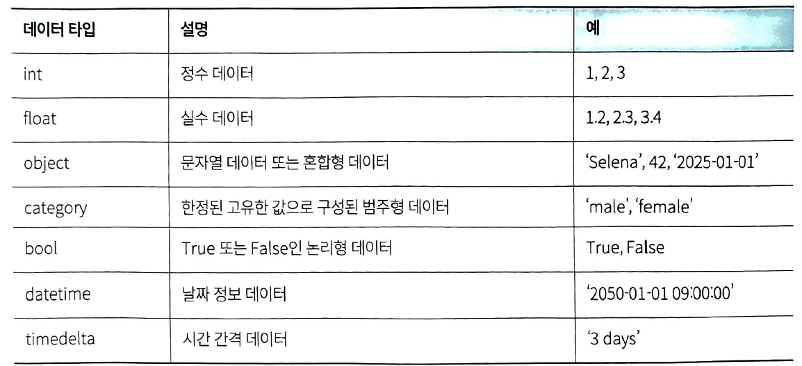 Pandas에서 제공하는 데이터 타입
