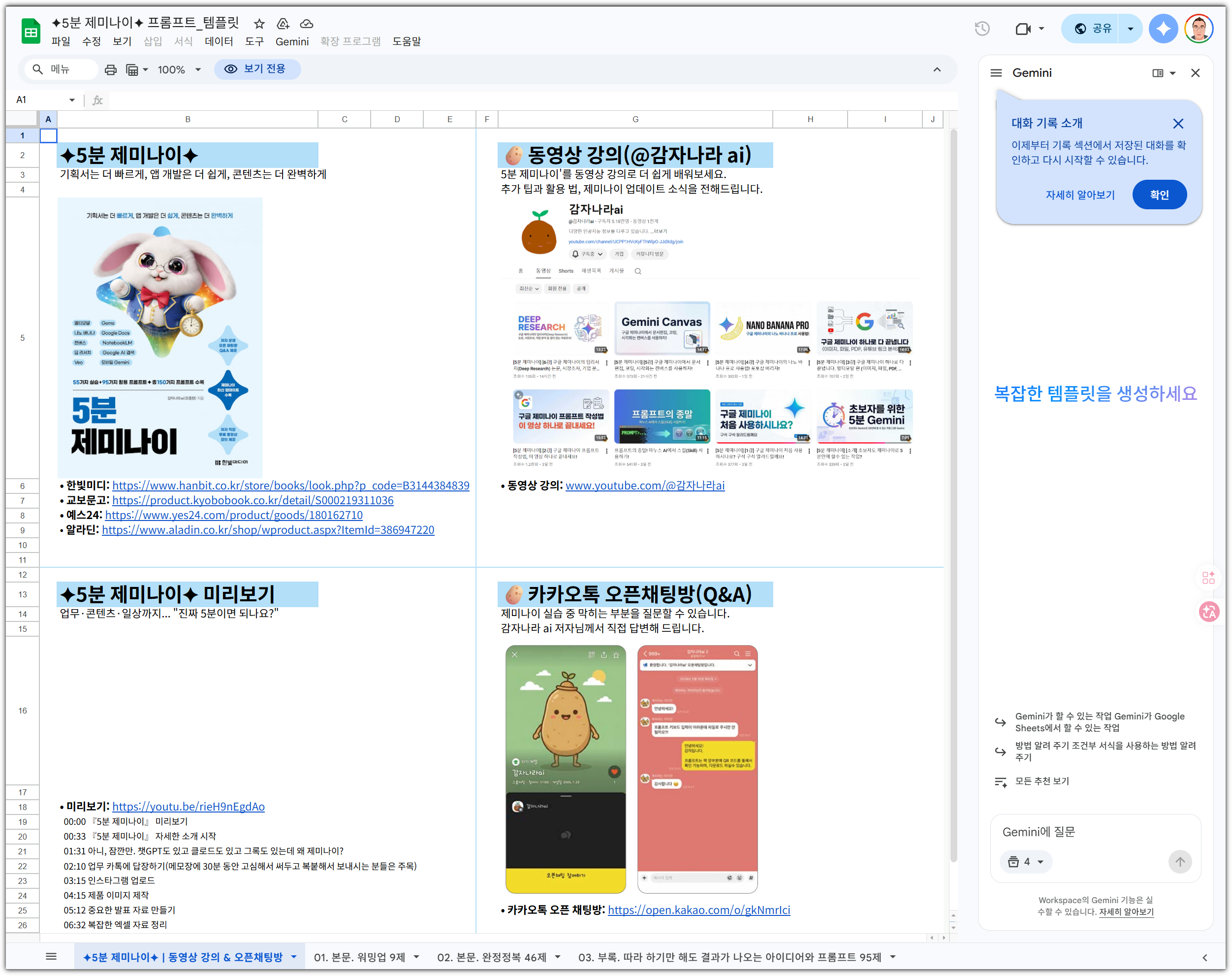 "5분 제미나이" 책은 기본서 정도로 볼 수 있을 것 같다.