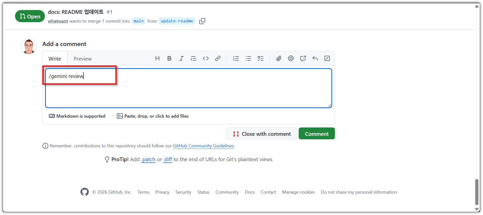 이제서야 `Gemini Code Assis for GitHub`라고 자백하는구나 !!