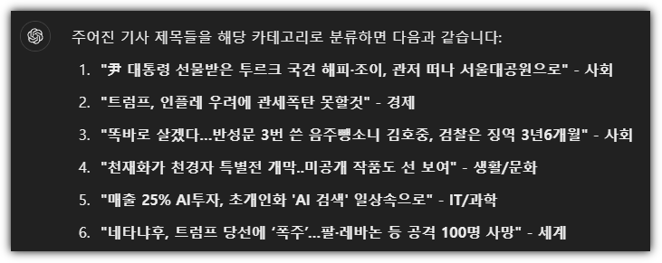 혹시나 하고 ChatGPT를 시켜봤더니 Top1으로 해서 1개 빼고 모두 잘 분류했다. 역시 ChatGPT !!!