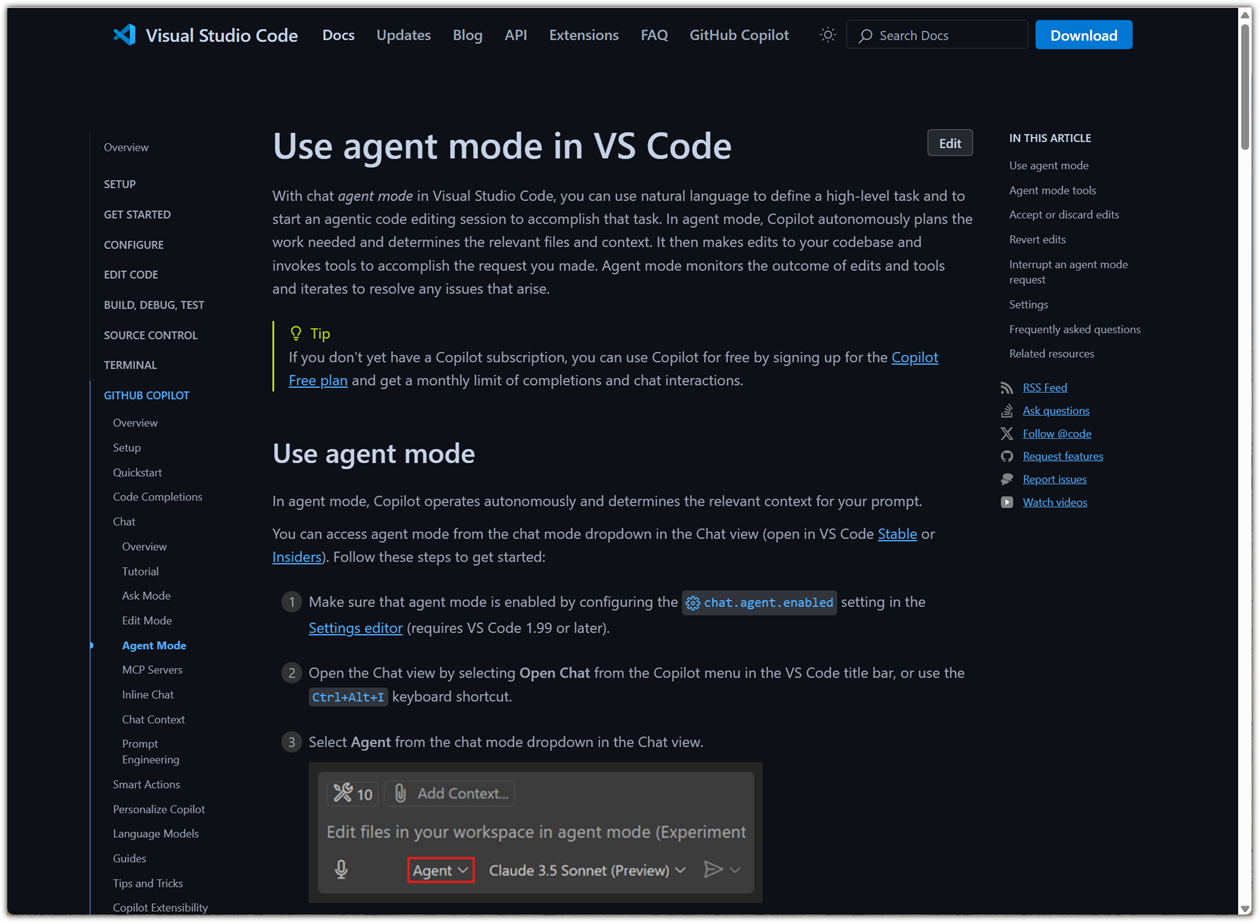 - https://code.visualstudio.com/docs/copilot/chat/chat-agent-mode