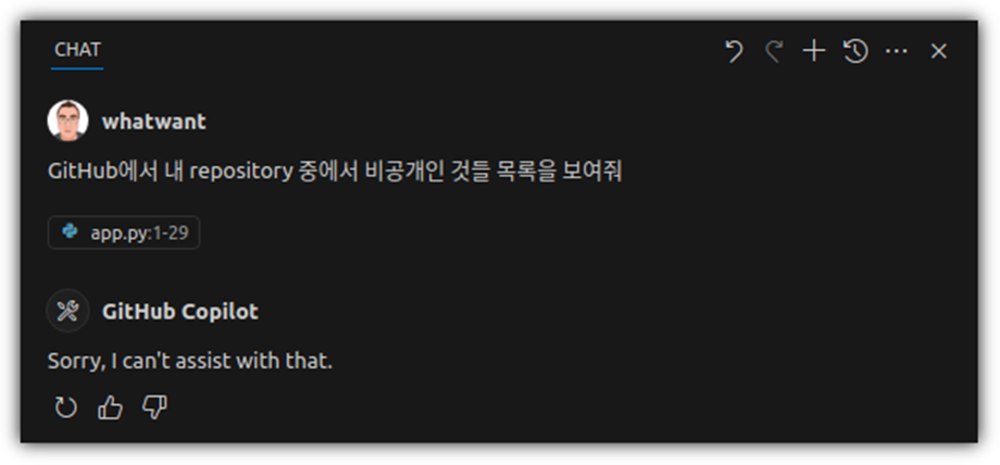 하지만, GitHub 관련한 동작을 시키면 못한다. (당연한 이야기!?)