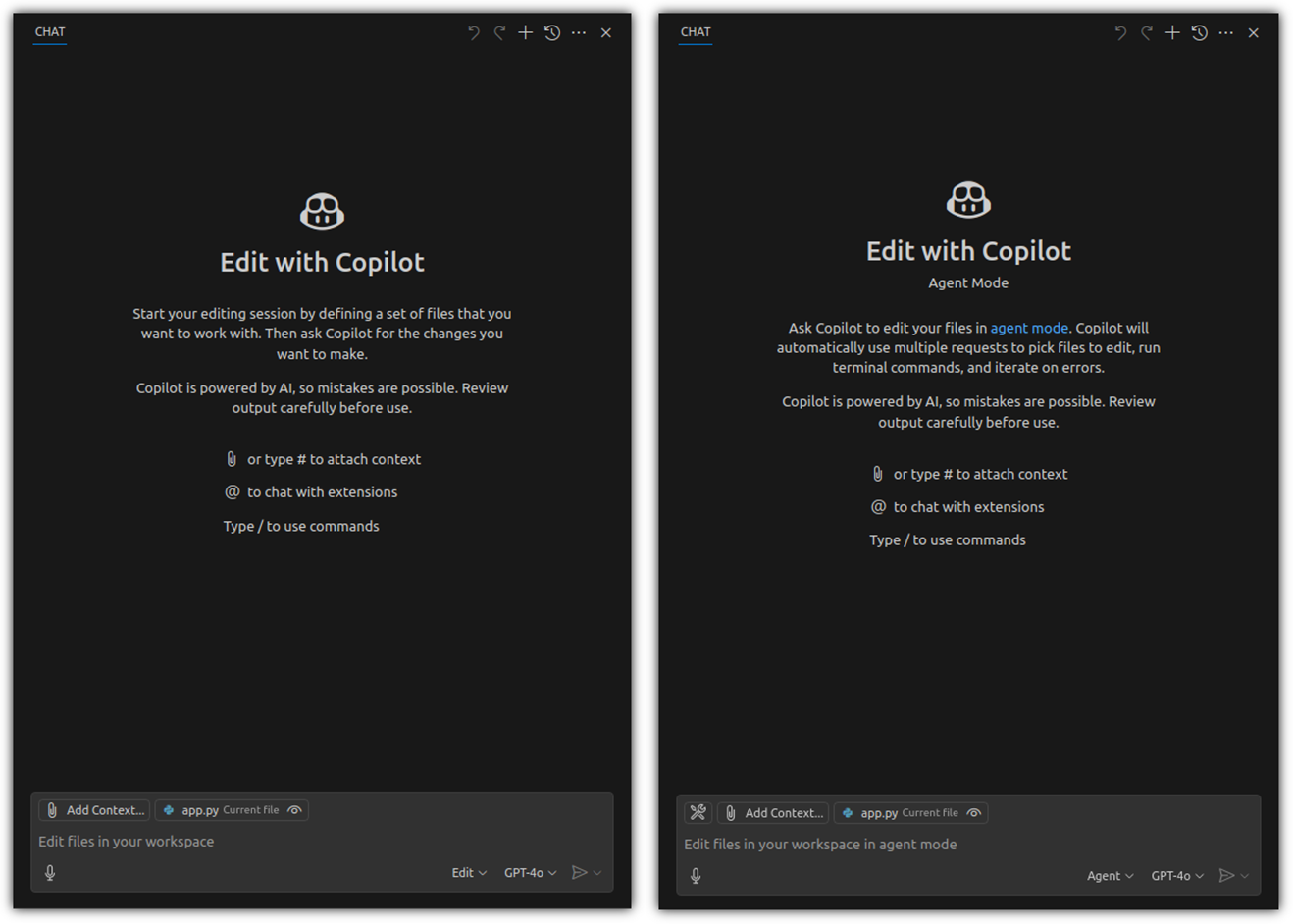 사실 Edit 모드와 Agent 모드는 비슷 인터페이스를 보인다.