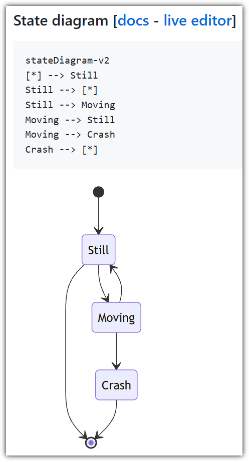 - Renderer가 한 번 업그레이드가 되어 `stateDiagram-v2`라고 명명해야 한다.