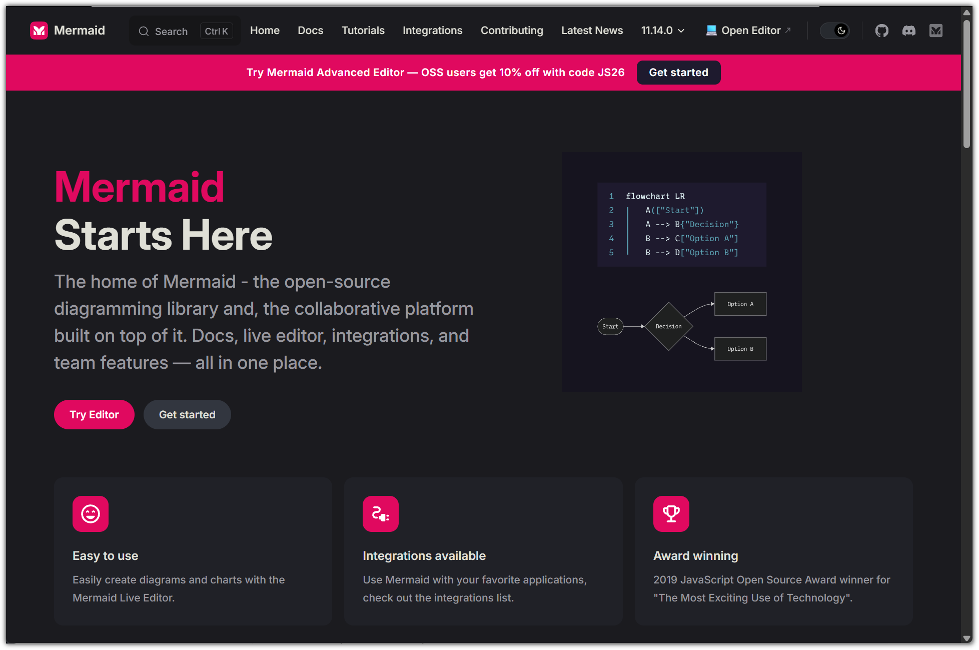 - 예전엔 여기가 메인이었지만, `② mermaid.ai` 사이트를 최근에 밀어주고 있다.