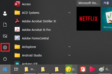 - 시작 메뉴의 기어 모양 버튼을 통해 "제어판" 실행