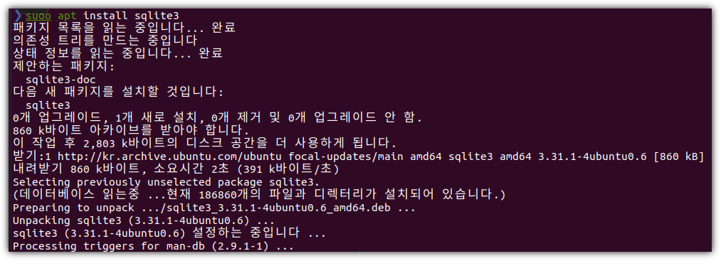 sqlite3 {database filename} | 데이터 베이스 생성하면서 접속 (기존 데이터베이스가 있으면 읽어들임) |