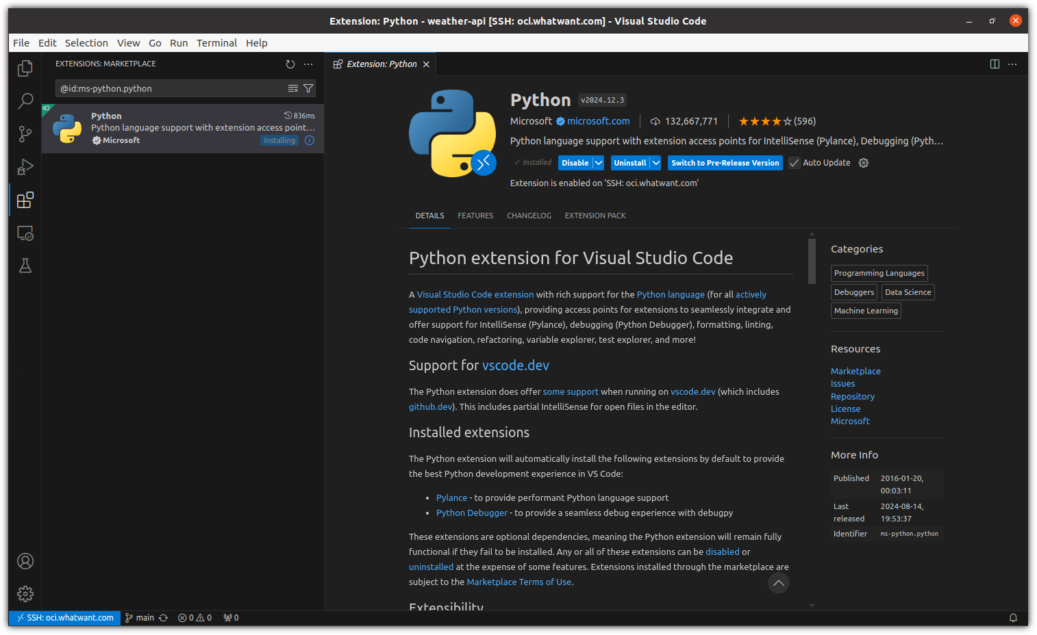 - 그런데, 이렇게 Remote PC/Server를 연결하게 되면 기존에 사용하던 Extension들이 안보인다.