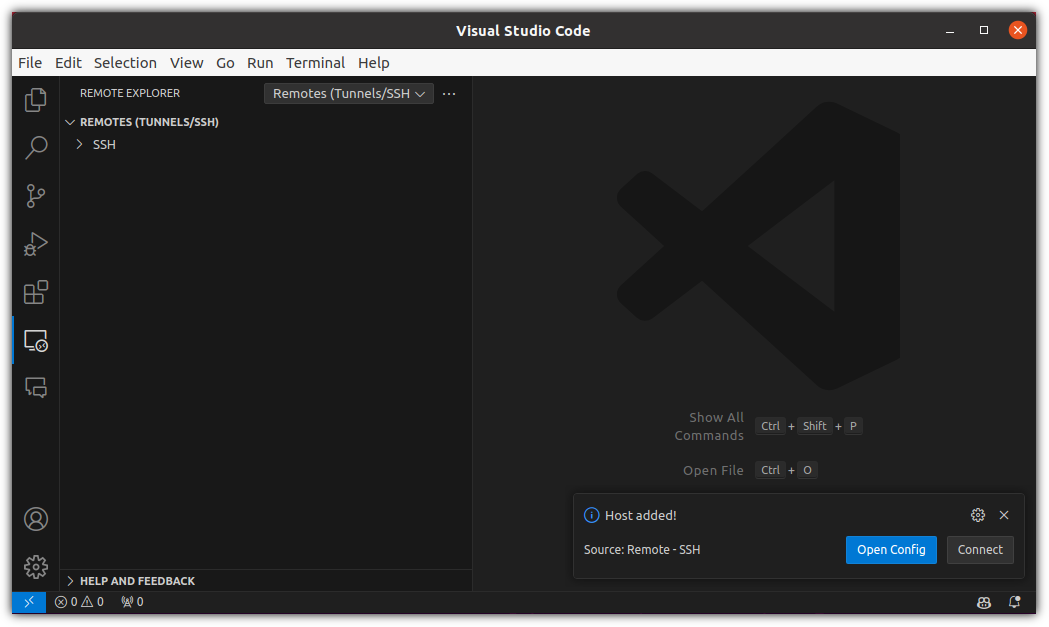 - "Ctrl + Shift + p" 해서 "Remote-SSH ..." 메뉴 중에서 "Connect Current Window to Host ..."를 선택하자.