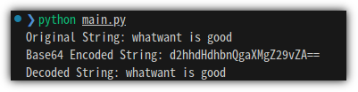 base64 encoding 된 결과물이 binary 형태이므로 print하기 위해서 string 형태로 변환해서 출력한다.