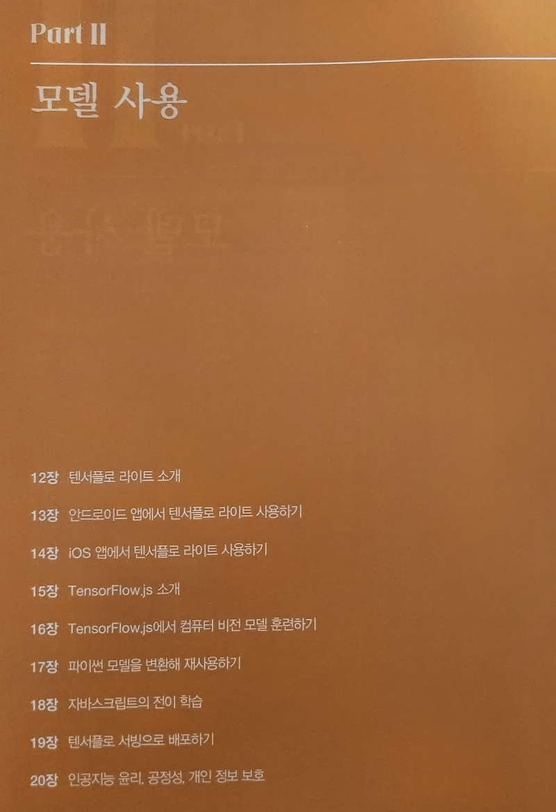 이 책은 크게 `모델구축`과 `모델 사용`의 두 묶음으로 구분이 되어 있다.