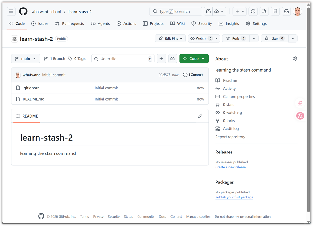 하지만, 이렇게 생성되는 repository의 상태는 텅텅비어 있는 경우와 initial commit이 있는 경우로 구분될 수 있다.