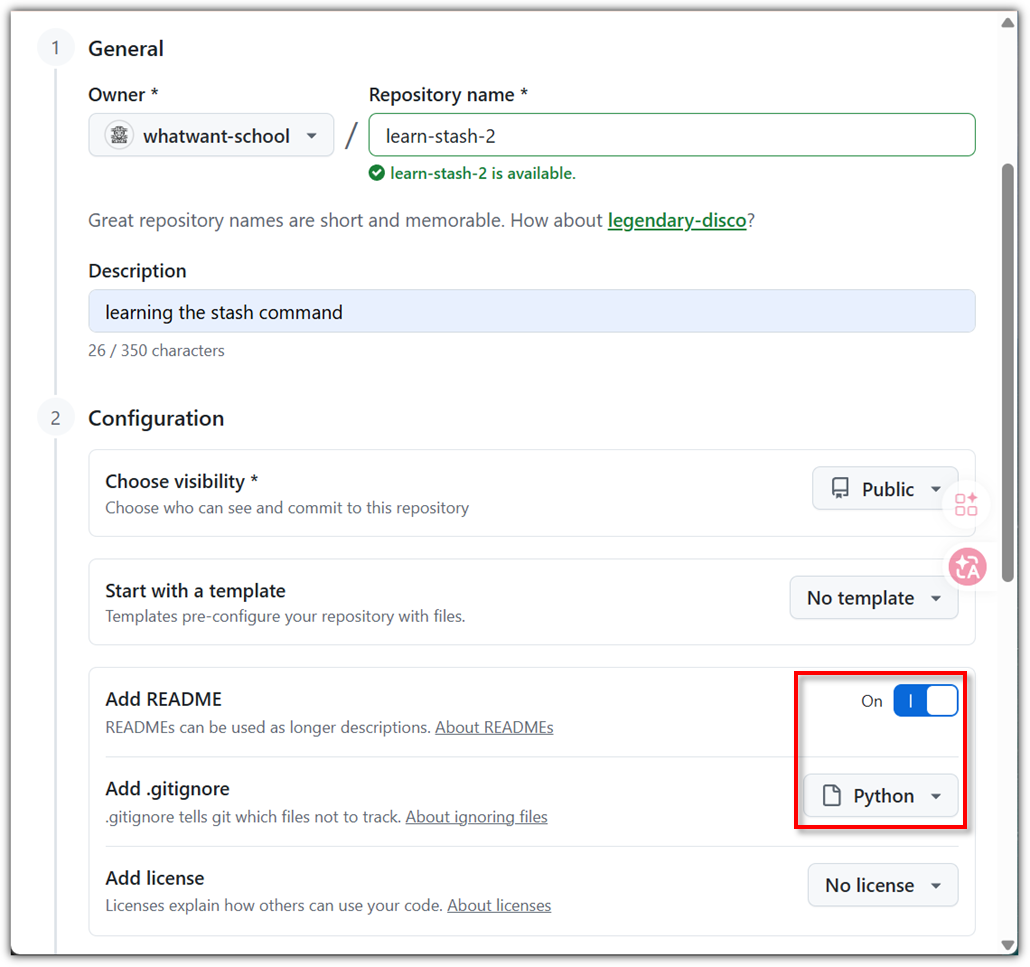 README 파일을 생성하도록 하거나 .gitignore 파일을 포함하도록 하는 경우를 살펴보자.