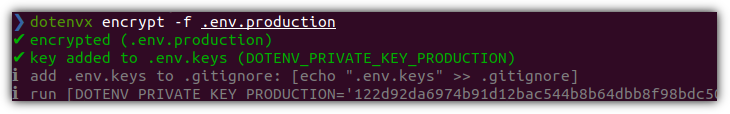 "dotenvx encrypt" 명령어를 이용해서 암호화할 파일을 지정해주면 된다.