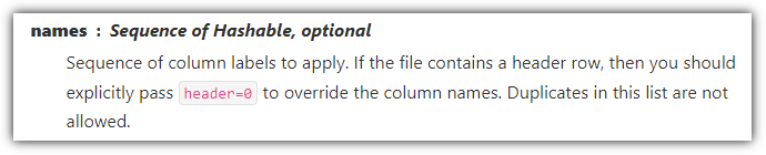header 매개변수의 기본값은 "infer"이고, 자동으로 header를 추론하게 된다.