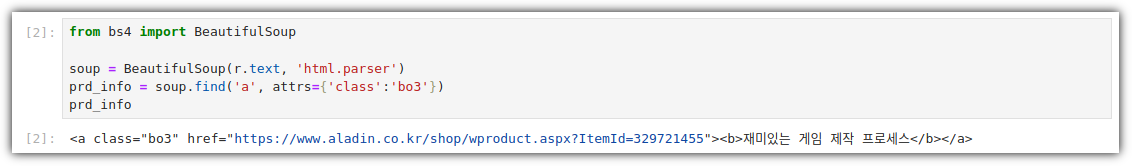 상세 페이지 링크가 책 제목 부분에 붙어 있으므로 아래와 같은 HTML Tag 부분을 잡아내면 된다.