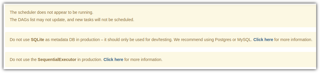 - 가장 위에 있는 메시지를 보면 실행중인 "scheduler"가 안보인단다. 해결해보자.