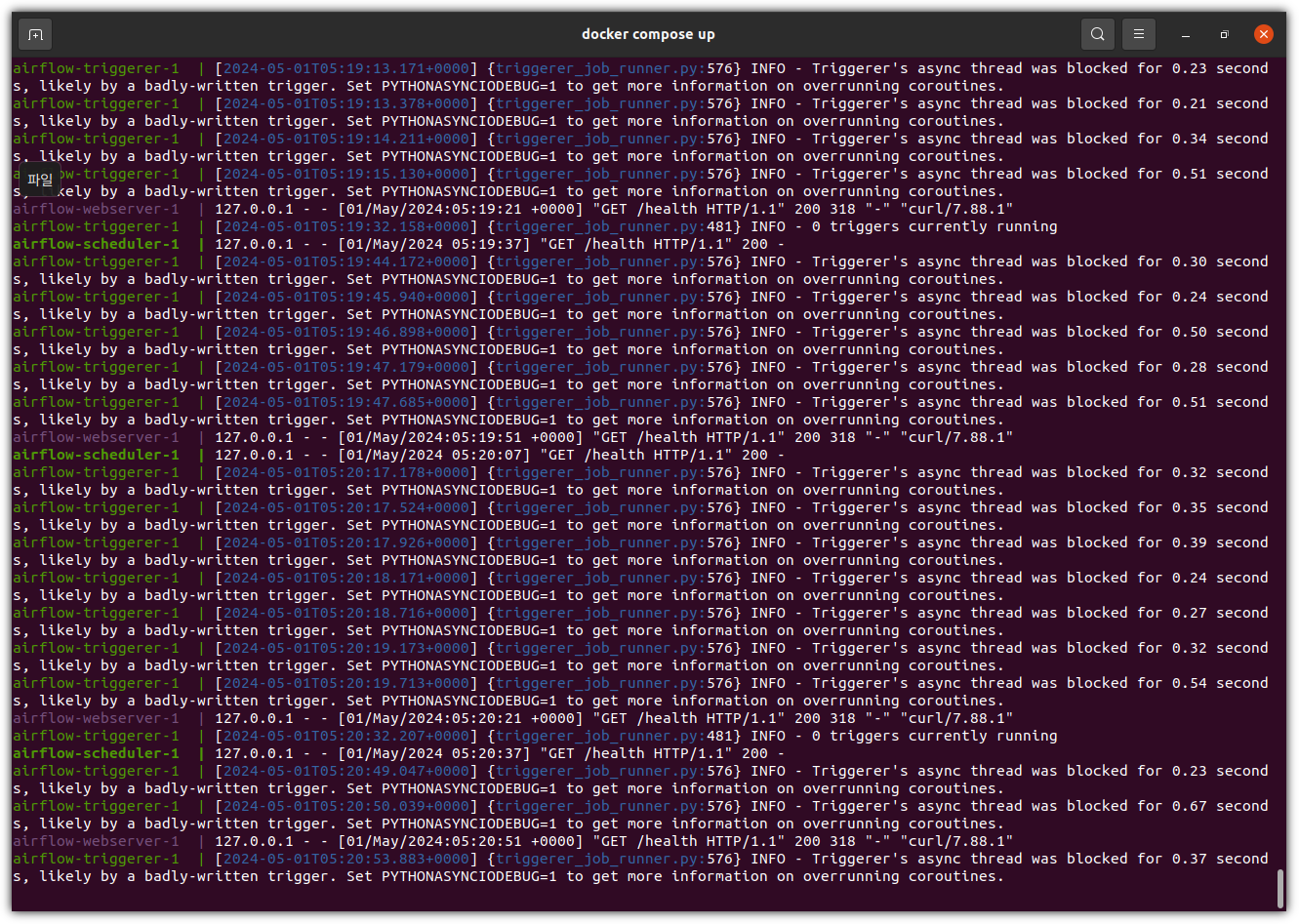 - 새로운 터미널을 추가로 띄워서 scheduler를 실행하면 된다.
