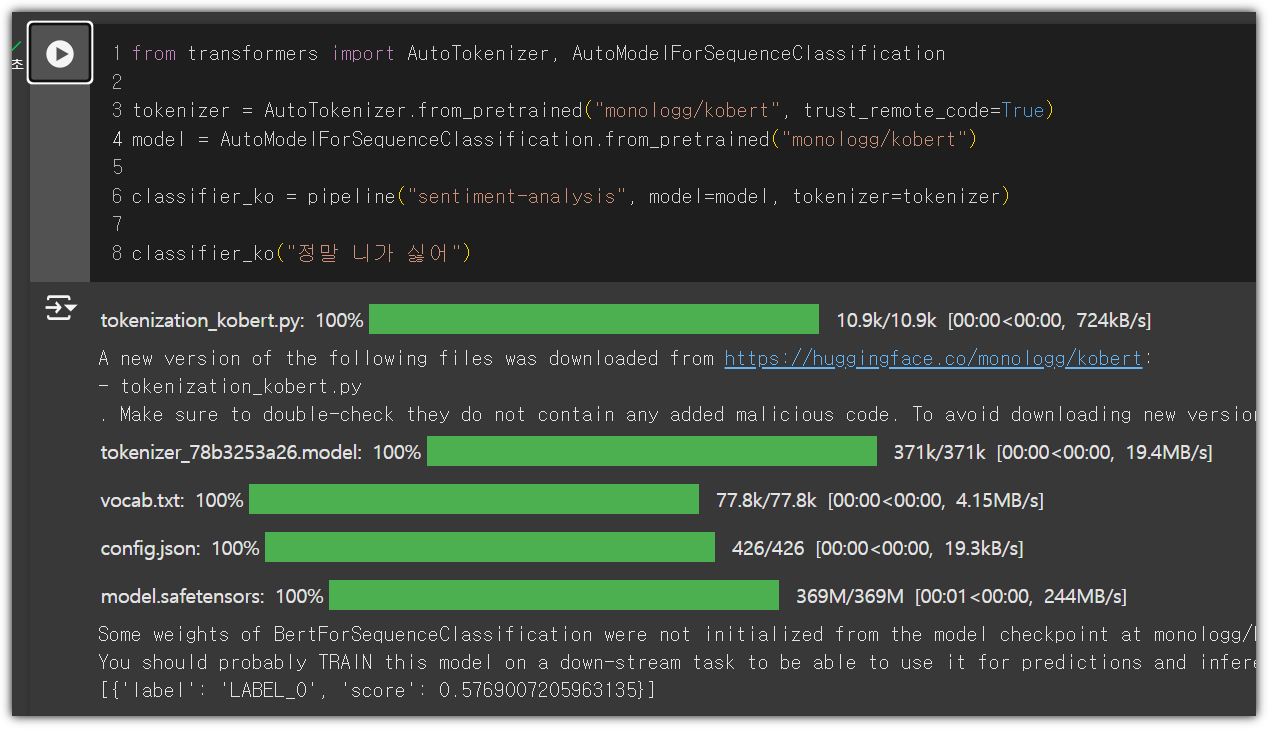 이번에는 나름 유명한 koBert 모델로 지정해서 해보자.