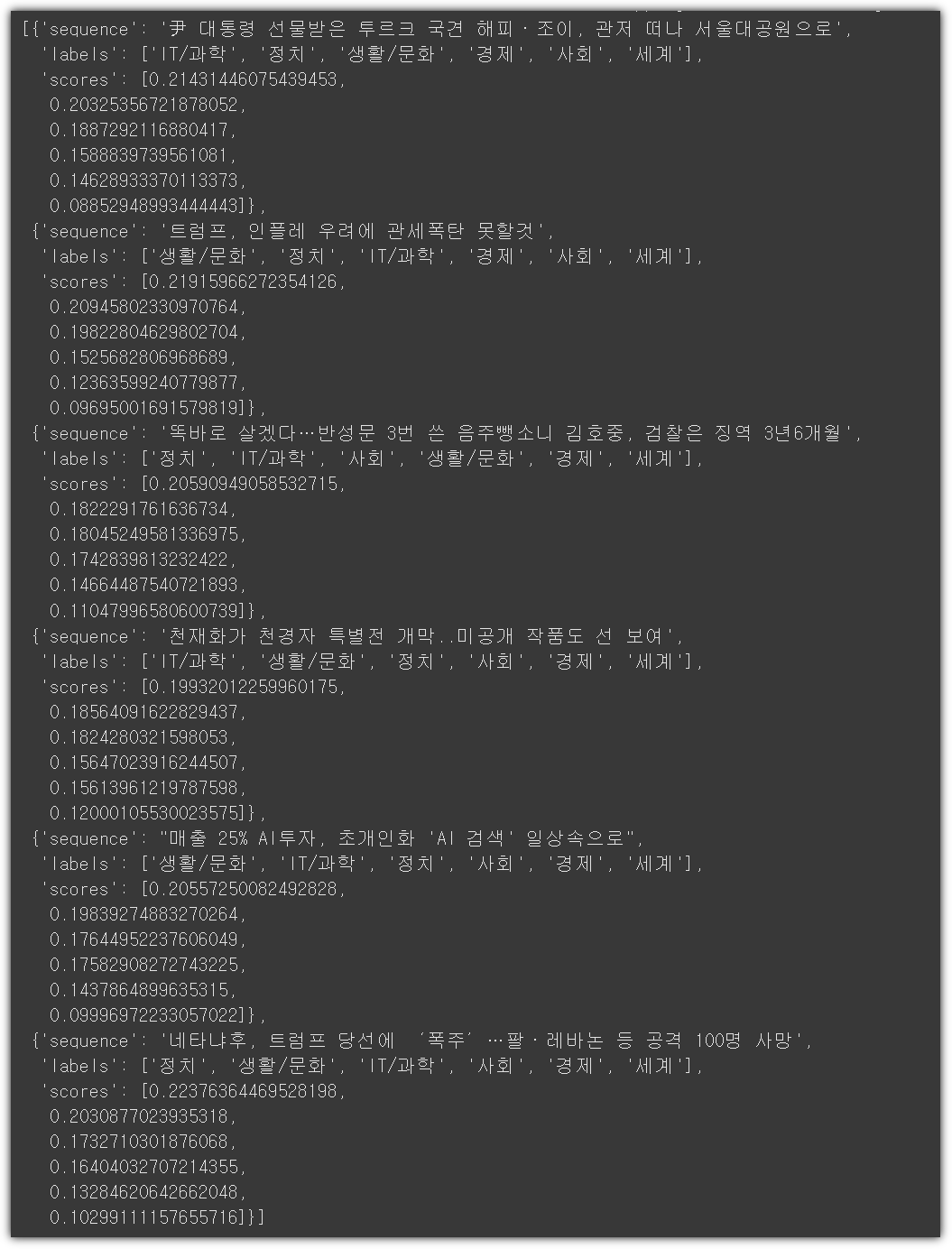 labels = ["정치", "경제", "사회", "생활/문화", "IT/과학", "세계"]