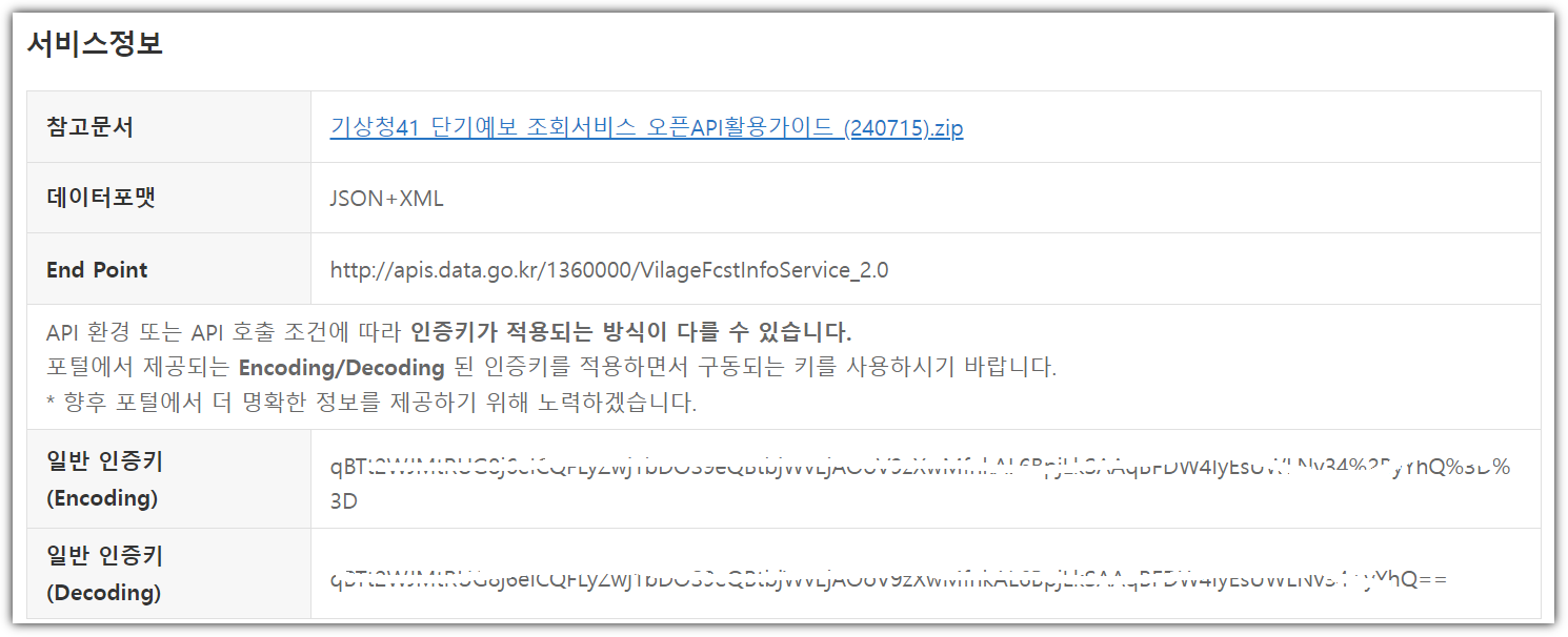 Postman을 사용할 때에는 Encoding된 인증키를 넣어줘야 했다.
